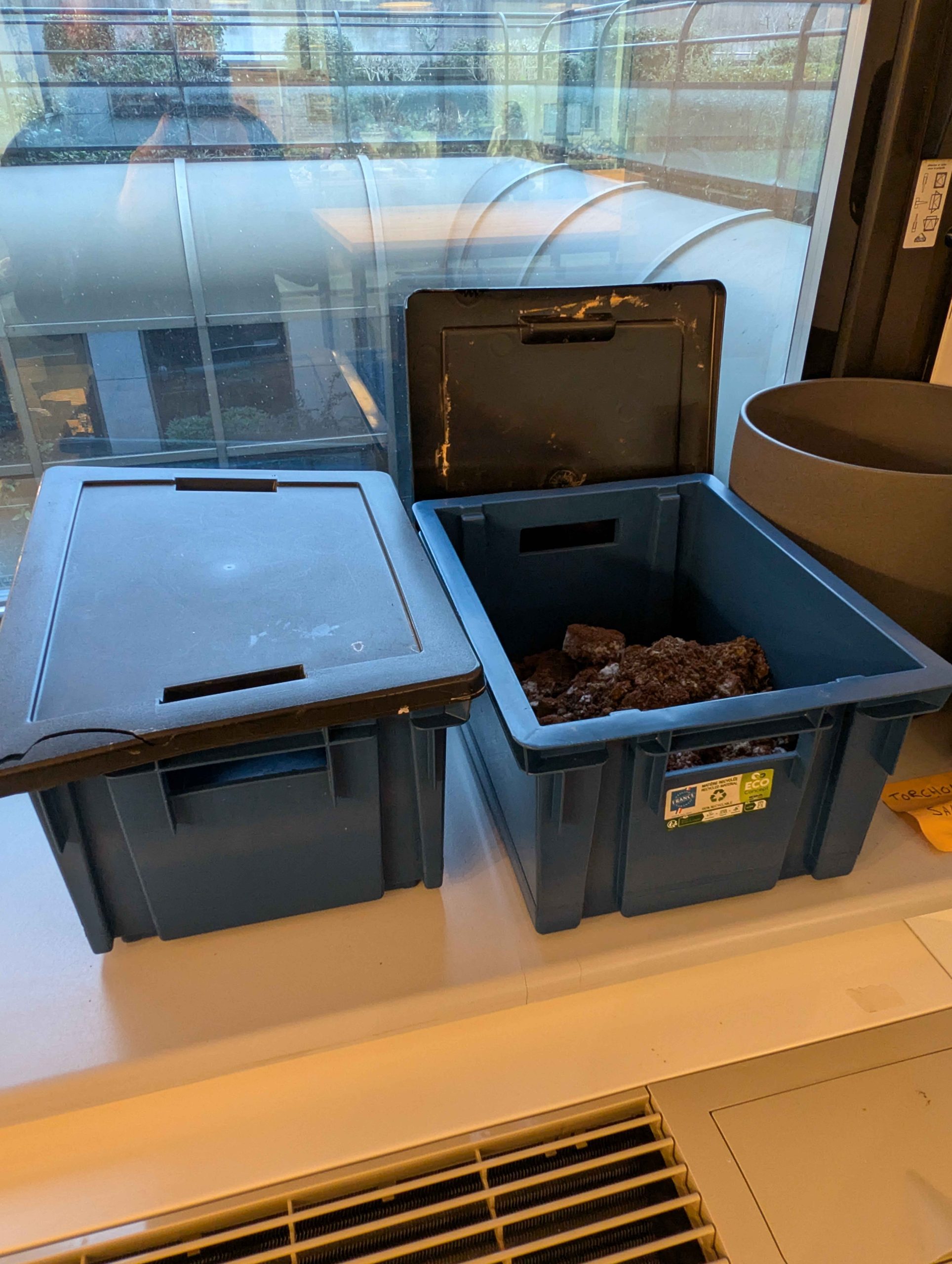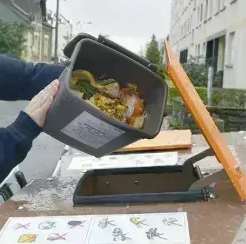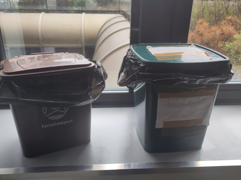 ![]() | Contenant pour déchets alimentaires ⛹ Cafétéria (bord de la fenêtre) | ✅ épluchures de fruits et légumes (y compris les agrumes), coquille d’œufs, croûtes de fromage, pain, restes de sandwich ou de plats, sachets de thé ❌ Sacs compostables, mouchoirs |